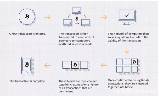 Protokol Bitcoin dibangun di atas blockchain. Dalam sebuah makalah penelitian yang memperkenalkan mata uang digital, pencipta Bitcoin Satoshi Nakamoto, nama samaran, menyebutnya “sistem uang elektronik peer-to-peer baru yang sepenuhnya, tanpa pihak ketiga yang tepercaya.”