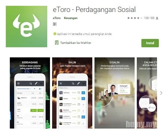 Catatan: Berdagang dengan aplikasi Etoro membutuhkan VPN