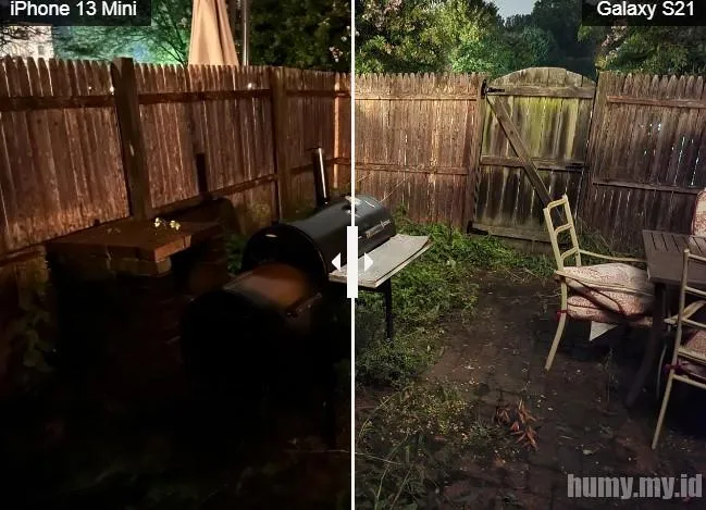 Mode malam ternyata menarik, seperti yang Anda lihat. Upaya Galaxy S21 memotret perokok di tengah malam ini ternyata jauh lebih terang ketimbang iPhone 13 mini. Tidak hanya perokok lebih fokus dengan lebih detail, tetapi dia juga dapat melihat bilah pagar dengan lebih baik di latar belakang. Saya berharap jauh lebih baik dari iPhone, mengingat mode Malam Apple umumnya sangat bagus.