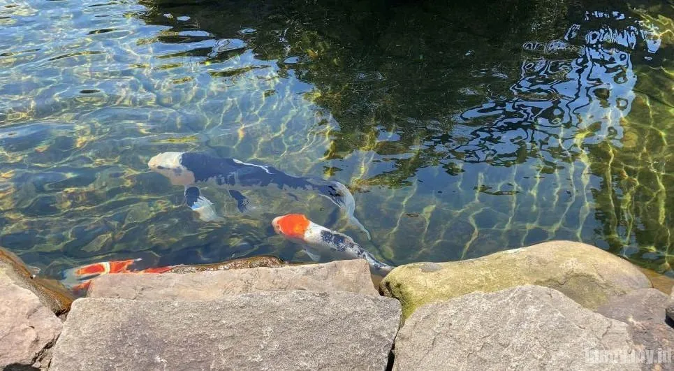 Saya sangat terkejut dengan tingkat detail dalam foto kolam buatan iPhone SE ini. Anda dapat melihat tetesan air di air terjun di kejauhan, dan tumbuh-tumbuhan muncul di sekitar formasi batuan. IPhone SE juga berhasil menangkap ikan hitam putih dan oranye dan putih di kolam itu, serta air biru-hijau.