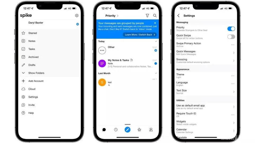 Spike mengubah banyak hal dengan mencoba mengaburkan batas antara email dan pesan instan. Ini lebih seperti iMessage daripada Apple Mail, yang mungkin membuat beberapa orang bingung.
