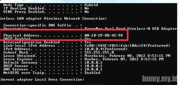 1.bp.blogspot.com - Lihat gambar di atas, informasi alamat MAC ditunjukkan dengan lingkar merah.