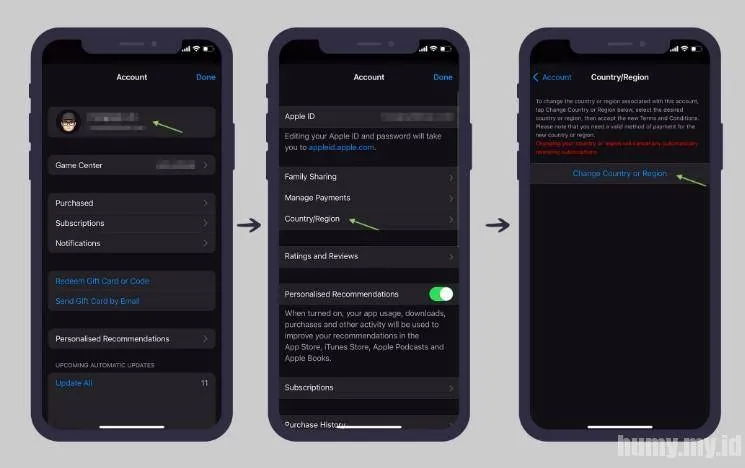 hongkiat.com - Di sini, ketuk nama akun Anda> Negara / Wilayah> Ubah Negara atau Wilayah.