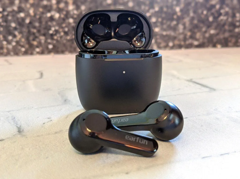 Sepasang earbud nirkabel lain yang telah menerima penurunan harga yang signifikan, EarFun Air mungkin tampak seperti beberapa AirPods palsu terbaik, tetapi mereka menawarkan lebih banyak kinerja. Musiknya terdengar terbaik dengan ciri khas audio yang berisi bass kuat yang menetapkan dasar yang kokoh untuk vokal yang jernih dan instrumen yang bersinar. Teknologi Bluetooth 5.0 memastikan bahwa koneksi ke perangkat tetap stabil dalam jarak 50 kaki. Sertifikasi IPX7 dan teknologi Sweatshield juga melindungi kuncup dari keringat dan dapat menahan perendaman dalam air setinggi tiga kaki hingga 30 menit. Pengisian nirkabel juga merupakan bagian dari paket.
